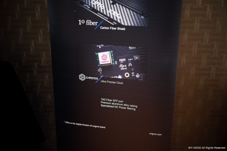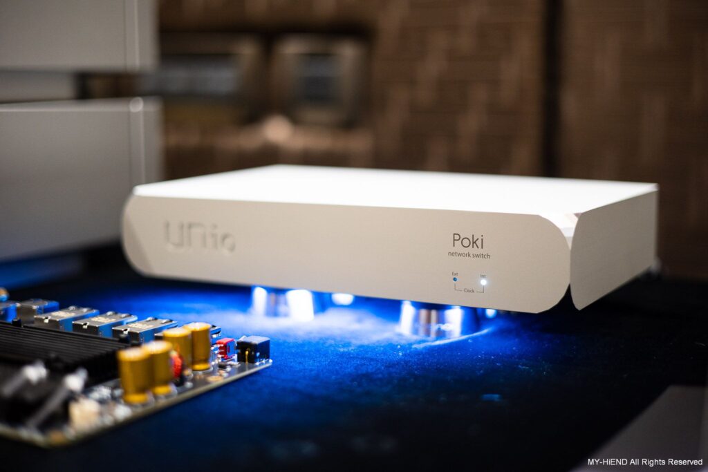 Post author:富林音響 Post published:10 1 月, 2026 Post category:媒體評選 本篇來自MY-HiEND作者:Ted Chen本篇文章日期:2025年11月26日 香港品牌ungnoi的數碼部門UNio日前推出最新的發燒級2.5G網路交換器Poki,提供1G獨立隔離網路端子、發燒級電容元件、特化4組直流電源供應、碳纖維隔離、特選CHRONOS Class內部時鐘,提供2.5G高頻寬傳輸、鋁合金切削機箱並具SFP傳輸端子和外接時鐘端子。 香港廠方由代表Richard在這次11月份TECA音響展上首度帶來UNio實機,算是正式和台灣發燒友見面。這部器材由台灣代理傑富音響負責銷售,有興趣的朋友可以直接聯絡代理。 UNio Poki網路交換器是專為發燒音響系統打造,外觀能看出是由鋁合金製作,提供最佳的抗干擾能力。前方燈號顯示時鐘狀態,提供使用內置時鐘與外接時鐘兩種方式。在底部則有藍色燈光表示運作,燈號在機箱外側,不必擔心干擾內部電路。 後方端子顯示,左側為接地端與DC電源輸入端。中央提供4個RJ45 2.5G的網路端子,在右側有獨立的Zen Zone RJ45網路端子,鎖定為1G傳輸速度並加強內部隔離,用來連接最重要的數位串流播放機。並提供1組SFP光纖端子,能使用10G或1G傳輸,連接具有SFP的器材或是提供再串入一台網路交換器的玩法。最右側的提供1組外接時鐘端子為10MHz輸入,在未來UNio將會推出相對應產品。 Richard此次特地帶來UNio Poki的內部電路版讓所有發燒友參考,可以見到多組端子、中央的散熱器、右方的發燒級電容、左側時鐘與晶片。正下方碳纖維包覆隔離的是4組不同電壓的DC過濾電路。 原廠採用日本進口碳纖維屏蔽,與ungnoi的碳纖維音響架使用相似材料。 UNio Poki時鐘採用CHRONOS Class特選超低相位雜訊時鐘,大幅減低時鐘的不穩定性。UNio團隊在每次3小時的恆溫器材測試下,在平均每20~30顆高階石英時鐘中揀選出一顆超低相位雜訊(Phase Noise )的CHRONOS Class極準時鐘作為核心,無論任何速度傳輸亦可以確保數據的精準和安靜。 在碳纖維隔離底下的4組DC直流電源過濾電路, 0.95V/1.1V/3.3V和5V濾波電壓設定,將相互干擾減至最低。 SFP端子,支援由1Gbps至10Gbps,可用於連接具有SFP傳輸的Streamer DAC、Network Switch、Router等。 UNio Poki網路交換器規格● 網絡線端子 1-4 : 2.5Gbps● 網絡獨立隔離區Zen Zone:1Gbps● SFP端子: 10Gbps / 1Gbps● 電源:DC輸入 12V – 3A (5.5/2.1mm)● 內部時鐘:CHRONOS Class特選超低相位雜訊時鐘● 外部時鐘輸入:BNC輸入、10MHz 50Ω, 正弦波, 方波● 尺寸:270 x 168 x 48 mm● 重量:3.5 公斤總代理 傑富音響: https://jeffaudio.com.tw/ungnoi: https://ungnoi.com/更多ungnoi報導請點此本文專屬網址: https://tw.my-hiend.com/?p=75801 Please Share This Share this content Opens in a new window Opens in a new window Opens in a new window Opens in a new window Opens in a new window Opens in a new window Opens in a new window Opens in a new window Opens in a new window Opens in a new window You Might Also Like 【u-audio】【試聽】Quad 33/303前後級 目前最超值的前後級Mono組合 4 4 月, 2025 【u-audio】幾乎達到全頻段重播 Magico SCC 中央聲道喇叭 13 5 月, 2025 【u-audio】【試聽】2.1聲道好搭、好玩、好調JL Audio E-Sub e112 19 2 月, 2025