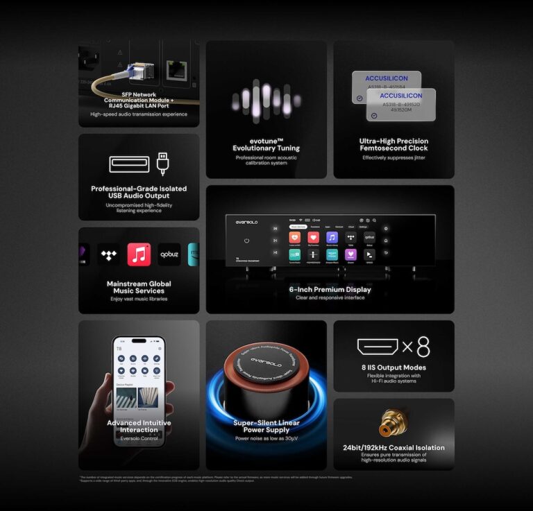 一如過往,Eversolo T8 同樣支援近乎市面上所有的串流服務平台,且支援多個平台的 Connect 播放,它也通過了 Roon Ready 認證,不管你習慣怎麼聽音樂,T8 都能滿足需要。它所支援的檔案格式包括了 DSD、PCM、FLAC、APE、WAV 等高解析格式,也支援其他如 MP3、AAC 等壓縮格式,幾乎你餵它什麼,它都吃得下。音訊檔案的取樣率最高可支援到 PCM 32bit/ 768kHz、DSD512 的水準,完全可對應高解析音樂播放。