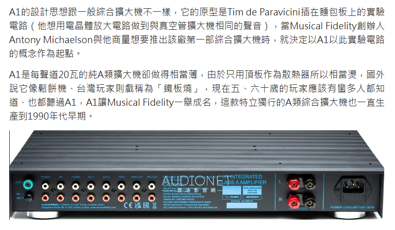 - 採用最原始 (1985) A1 外觀和電路經過現代改進